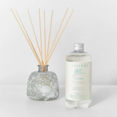 350ml Serenity Reed Diffuser Refills from Casaluna help fill your home with a mesmerizing fragrance. It is infused with scents of sage and mint to create a calm and soothing atmosphere. The diffuser refill is made with essential oils to evenly disperse the aroma for days. Give any space a spa-like feel with the help of this 350ml serenity reed diffuser refills from Casaluna.