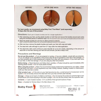 Rediscover your baby-soft feet with this Baby Foot Foot Peel. Made with 17 natural ingredients and botanical extracts, this lavender foot peel is designed to remove dead skin cells on your feet that build up over time and can contribute to numerous problems associated with the soles of your feet. This lavender-scented foot peel exfoliates away unwanted skin to take care of your dry, cracked feet, and helps with blood circulation while keeping foot odor and athlete’s foot at bay.