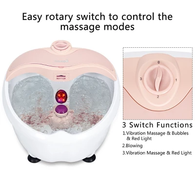 From now on, save your time and cost from assisting a spa. Choose our foot bath spa massager with foot cleaner. You can spend hours soaking your feet and ease the pain in the comfort of your home and tension from the hectic life at work. The foot massager with multifunction of blowing, warmth, oxygen bubbles massage, high-frequency vibration massage, roller massage and red light irradiation provides you a warm foot spa to relieve fatigue. And with easy-to-use rotary switch, you can choose 3 different modes to massage your feet. Treat your feet to a massage and spa experience at home as you comfort your feet in warm relaxation. Take good care of one of the hardest working parts of your body. And also it’s a perfect gift for loved ones, or an affordable luxury treat for yourself. Do not hesitate! Order it now!