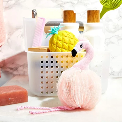 Wash away your troubles after a long day at work or school with this cute loofah set. Ideal for adults and children of all ages. Made from high-quality mesh that will create a luscious lather to wash away dirt and dead skin cells. Each flamingo sponge loofah measures 3.5 x 3.5 x 11.5 inches; includes ribbon loop for convenient hanging.