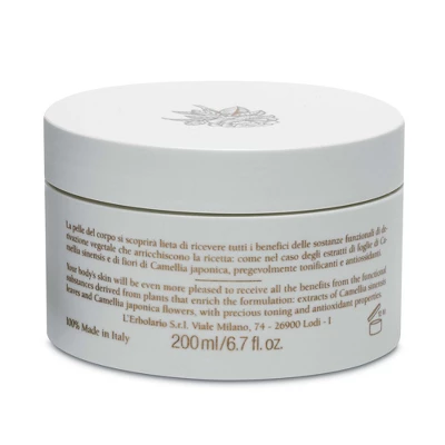 L’Erbolario Camelia Body Cream has a velvety, rich texture that easily combines with the skin of the body in just a fast application. Formulated with plant-derived ingredients including oils from Camellia japonica seeds, organic Sunflower oil, and olive oil this nourishing formula is very pleasant and beneficial to the epidermis.