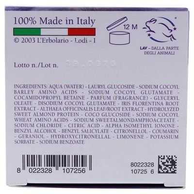 L’Erbolario Iris Shower Gel is a very fragrant and relaxing bath foam. In the form of a fluid extract, alongside the amino acids of wheat, Iris provides a gentle and very delicate cleansing action to give you skin that is softer and smoother than ever. The natural formula with a floral, powdery scent is suitable for all skin types.