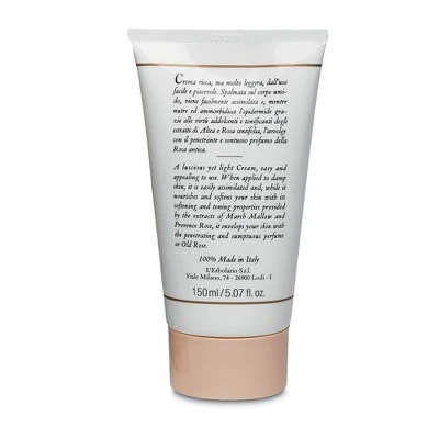 L’Erbolario Rose Perfumed Body Cream is a luxurious yet light cream, that absorbs quickly to damp skin to provide nourishing and softening benefits with marshmallow and rose extracts. It penetrates deeply and surrounds your skin with the opulent scent of floral, amber notes. This cream will saturate your dry skin with long lasting moisture to fade dry, wrinkle lines for renewed skin appearance.