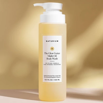 - Naturium’s The Glow Getter Multi-Oil Hydrating Body Wash cleanses with a gentle, milky lather & rinses clean, without residue