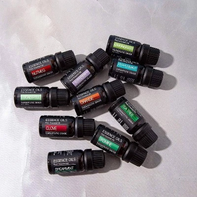 - 10 ESSENTIAL PLANT OILS – Our Top 10 essential oils include lavender, eucalyptus, tea tree, orange, peppermint, lemongrass, jasmine, nutmeg, clove, and spearmint oils. All oils are therapeutic grade come in amber 10ml jars to protect from sun degradation
