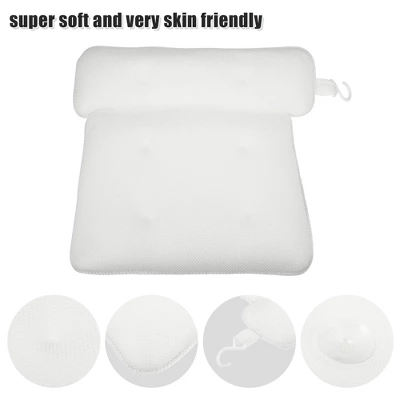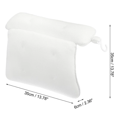 Item Function:1. A good gift for women and men, friends, mothers, fathers, and so on. 2. For smart support, this bathtub pillow delivers both in affordable style. Our inflatable bath pillow eliminates common and annoying pillow slippage to create a good bath experience. 3. The ergonomic design is great for back and neck support and is a good accessory for a bubble bath for women and men. 4. The pillow is made of a durable material, which is waterproof, and is built to withstand the pressure of your back and head, and is made to last. 5. Transform your everyday bath into a spa-like experience with the bath pillow. Specification: Color: White, Material: 3D Mesh, Polyester, Size: 35x35x6cm / 13.78″x13.78″x2.36″(L*W*H), Package Included:1 Pcs Bath Pillow.